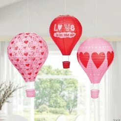 15″ Valentine Hot Air Balloon Hanging Paper Lanterns – 3 Pc.