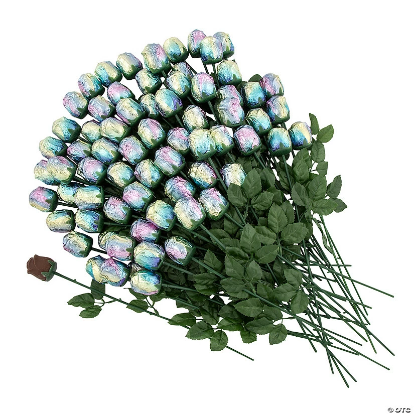 Bulk Iridescent Foil-Wrapped Chocolate Roses – 72 Pc.