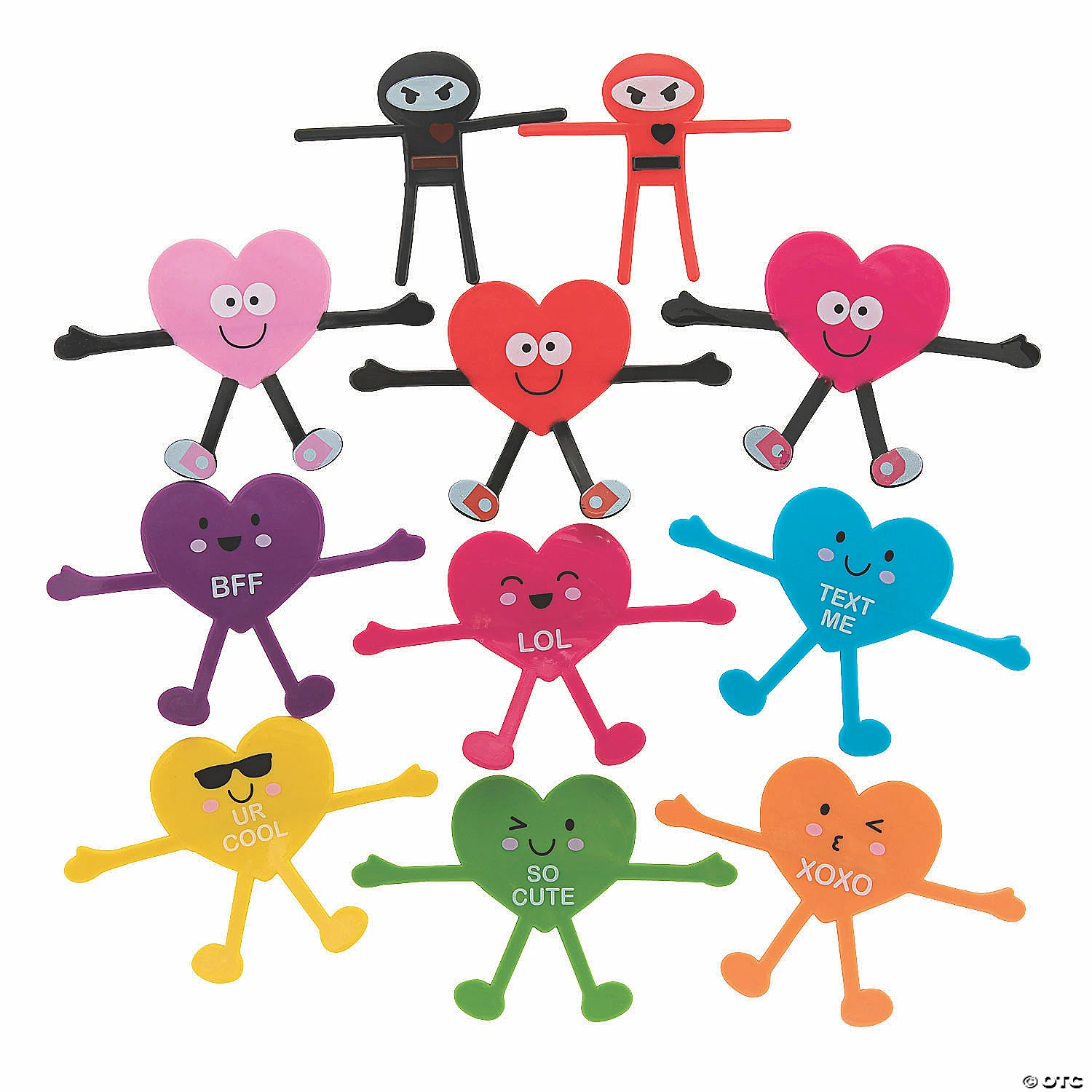 Bend the rules this Valentine’s Day and give away these cute Valentine toys as candy alternatives! Perfect for the office or for a classroom exchange, these vinyl toys are shaped like hearts you’ll love and ninjas that will sneak into your heart. Hand them out with valentines to the whole grade or as Valentine party favors. Vinyl. (144 pcs. per unit) 3 1/2″ – 5 1/4″ Assortment may vary.