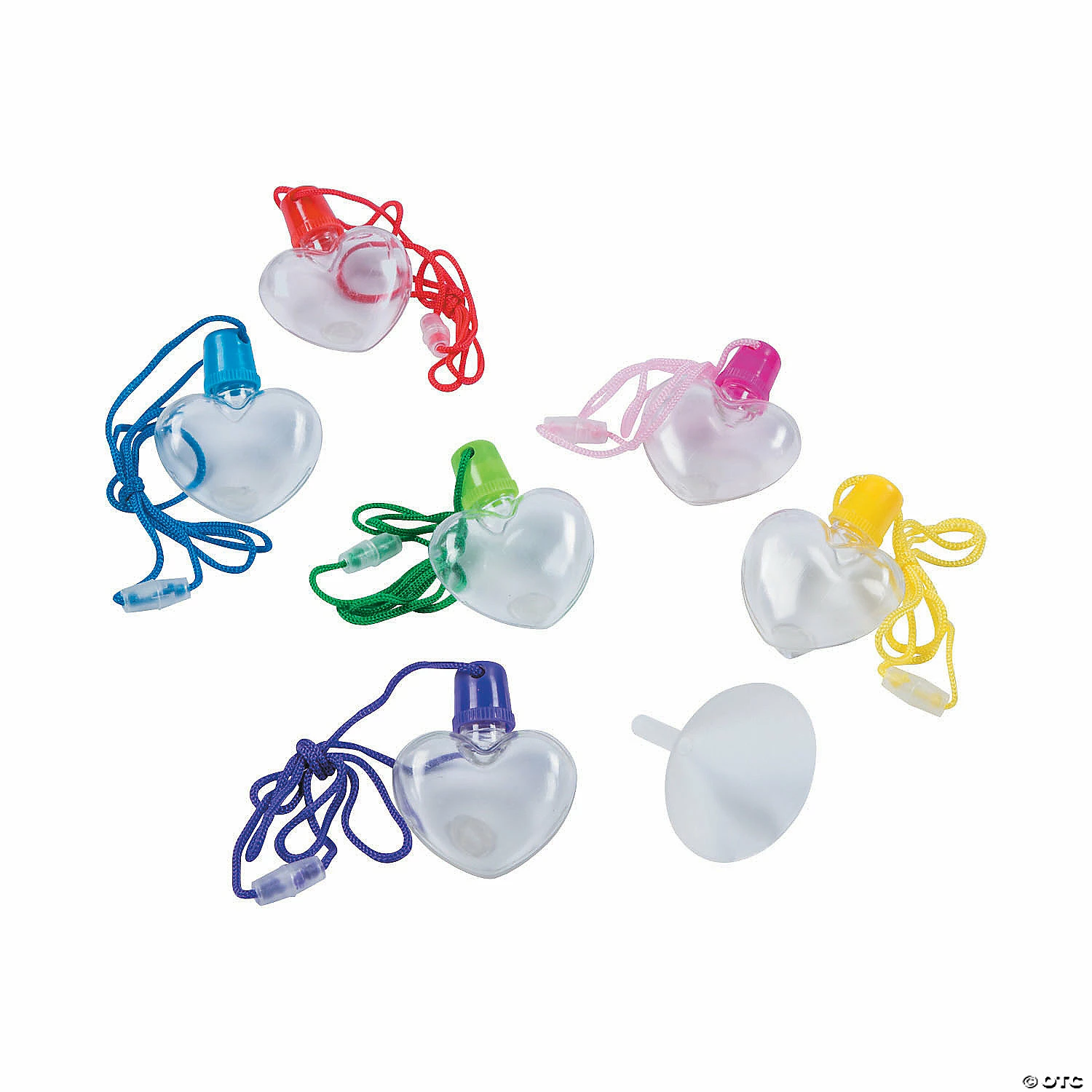 Heart Sand Art Bottle Necklaces. Brighten up your heart with colorful sand! A wonderful Valentine’s Day craft, these hearts will give girls and boys a chance to show what’s really in their heart. Fill these hearts by layering colored sand to create unique necklaces that are sure to be loved by all. Includes 1 funnel. Plastic. 2″ x 2 1/4″ on a 24″ nylon cord. Requires 6 oz. of total sand to fill all bottles. Sand sold separately online. © OTC