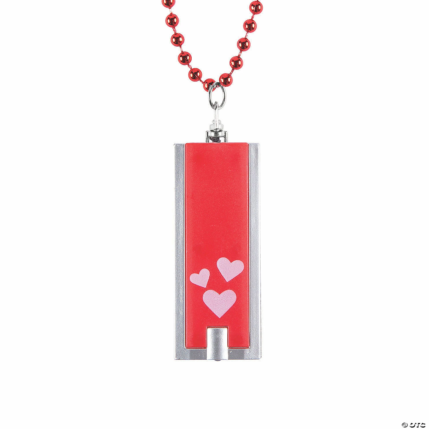 Shine a light on unique Valentine’s Day party favors with these flashlight necklaces! With a red background featuring pink hearts on a red beaded necklace, they’ll fit in perfectly with any Valentine’s Day party or classroom exchange. A great candy-alternative to the typical Valentine’s Day chocolate. Simply press and hold the button to shine the light. Plastic. 2 1/2″ flashlight on a 24″ breakaway cord. Includes batteries.