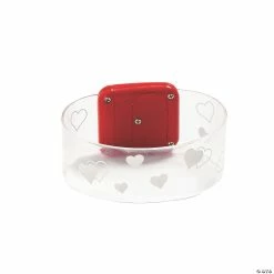 Your little sweethearts will love sporting light-up style! Great for Valentine’s Day party favors and giveaways, these bracelets feature designs of hearts and really light up. Give them out instead of sugary candy during a classroom exchange, or stuff inside goody bags during a kids’ celebration. Lights off and let the fun begin! Plastic. 7 1/2″ circ. Includes batteries.