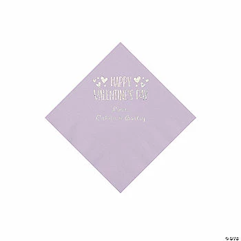 Lilac Happy Valentine’s Day Personalized Napkins with Silver Foil – 50 Pc. Beverage