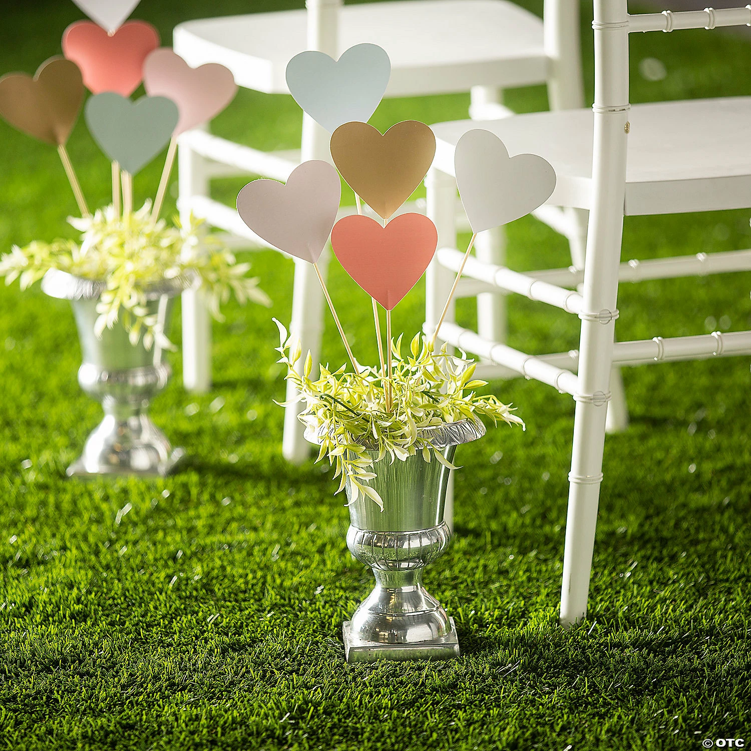 Walk down the aisle surrounded by love at your outdoor wedding with the help of these yard stakes featuring colorful heart shapes. Great as outdoor wedding decorations, these hearts can also be outdoor Valentine’s Day decorations or used as additions to other yard signs and stakes to create an impressive look. Cardstock hearts on wooden dowels. (50 pcs. per set) 4″ x 16″ Single-sided. © OTC