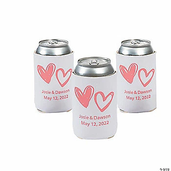 Besides the bride and groom, the best match for wedding days are our premium can coolers and drinks! Not only do they outfit your beverage with style but they keep things nice and cold. Perfect for wedding favors, these neoprene can coolers feature a cute yet chic design of two hearts. Hand them out as keepsakes guests can use throughout your wow-worthy reception, but be sure to leave some for yourself to take home! Personalize with 2 lines of text. Fits a 12-oz. soda can. (2 dozen per unit) 4″ © OTC