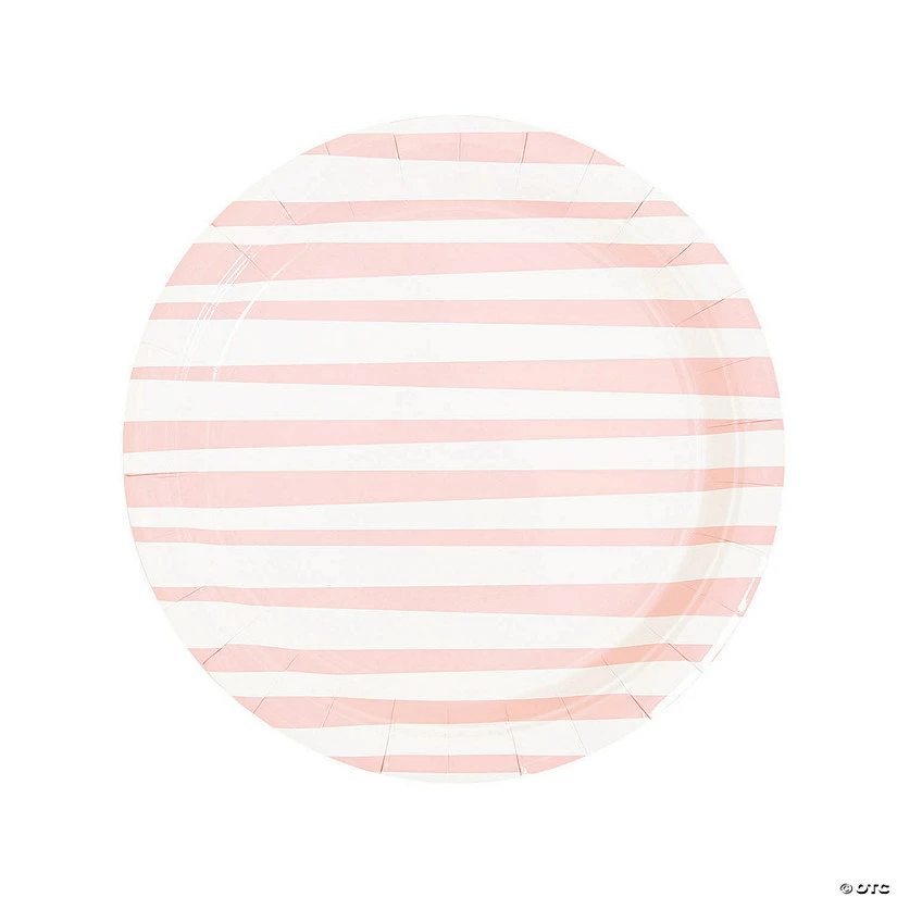 Pink Striped Round Paper Dinner Plates – 8 Ct.