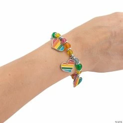 Help kids create something colorful at a diversity celebration or in the classroom with this simple craft kit. This craft kit has enough materials to create up to a dozen colorful beaded bracelets featuring heart enamel charms and lots of rainbow colors. There’s no need for jewelry-making tools with this pre-packaged craft kit! Includes 3/4″ metal charms, acrylic beads and 14″ stretchy cording. Makes 12. All craft kit pieces are pre-packaged for individual use. Kits include instructions. © OTCBeaded Valentine Charm Bracelet Instructions