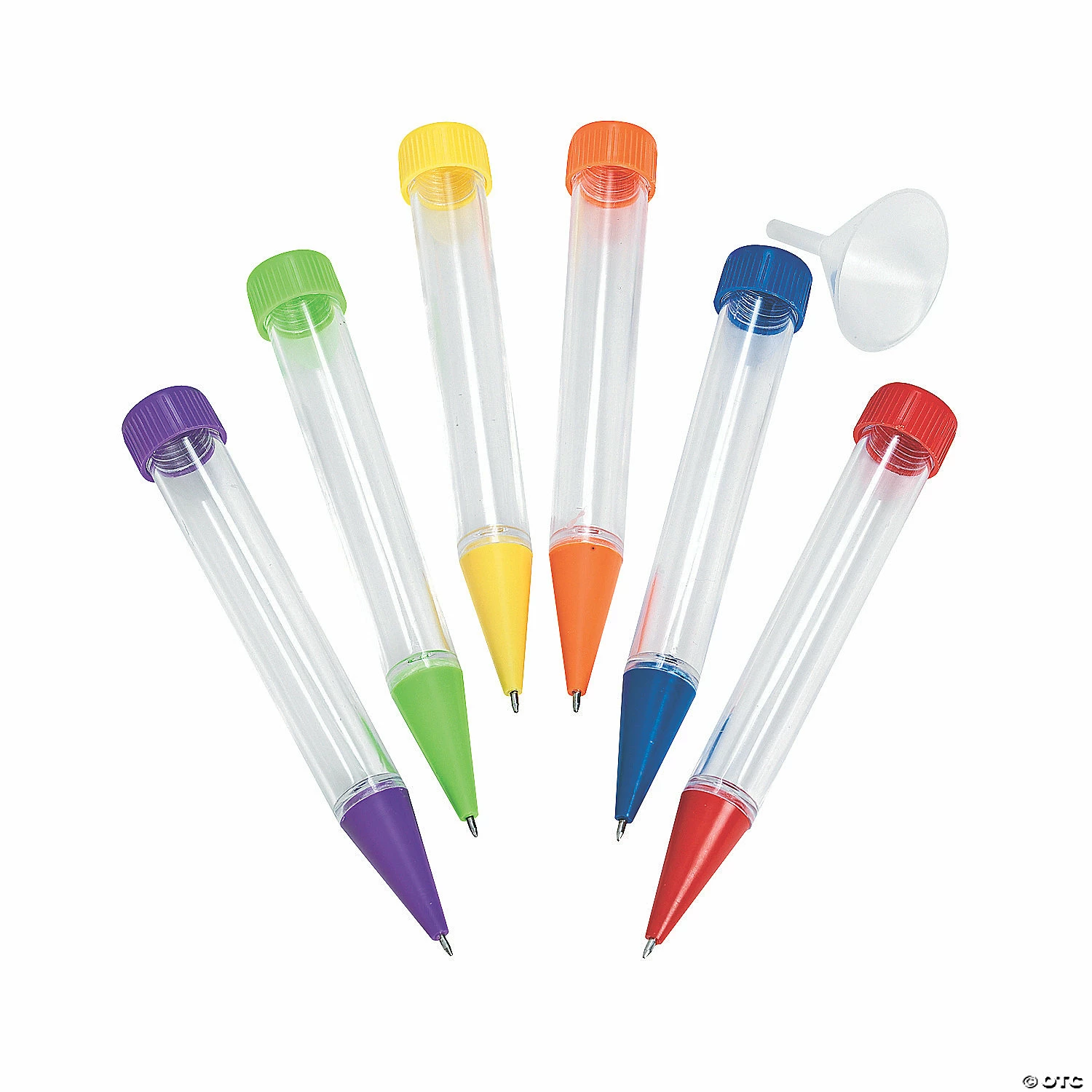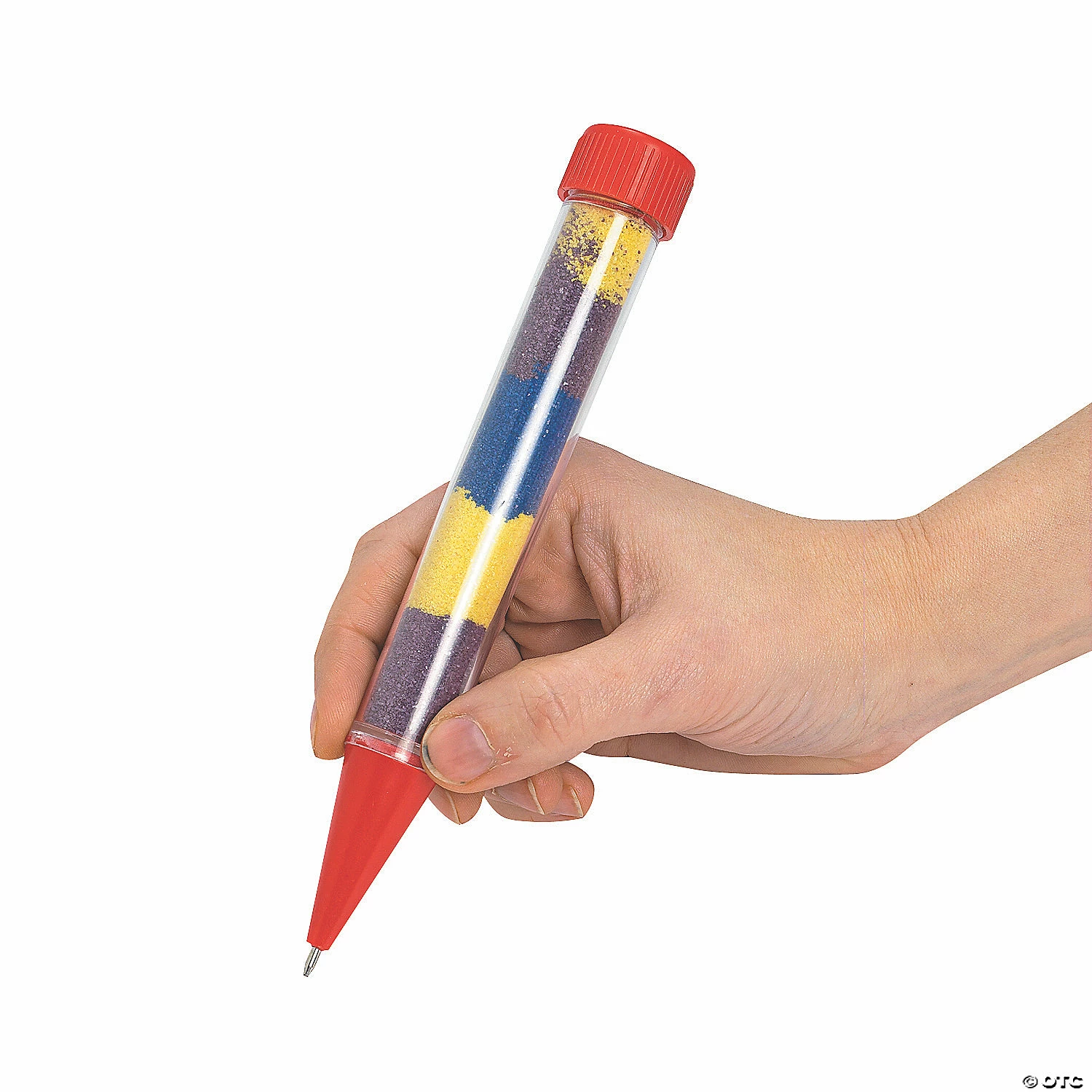 Get your craft on with these super awesome, super fun, Super Sand Glitzy Glitter Art Pens! Simply fill these plastic pens with sand or glitter to make funky colorful pens! Great for arts & crafts, after school projects or summer craft ideas for kids. The fun isn’t over when you’re done making the art pens. Kids will love expressing their creativity with these unique art supplies! Assorted. Includes 1 funnel. Plastic. 7″ Requires 12 oz. of total sand to fill all bottles. Sand sold separately online. © OTC