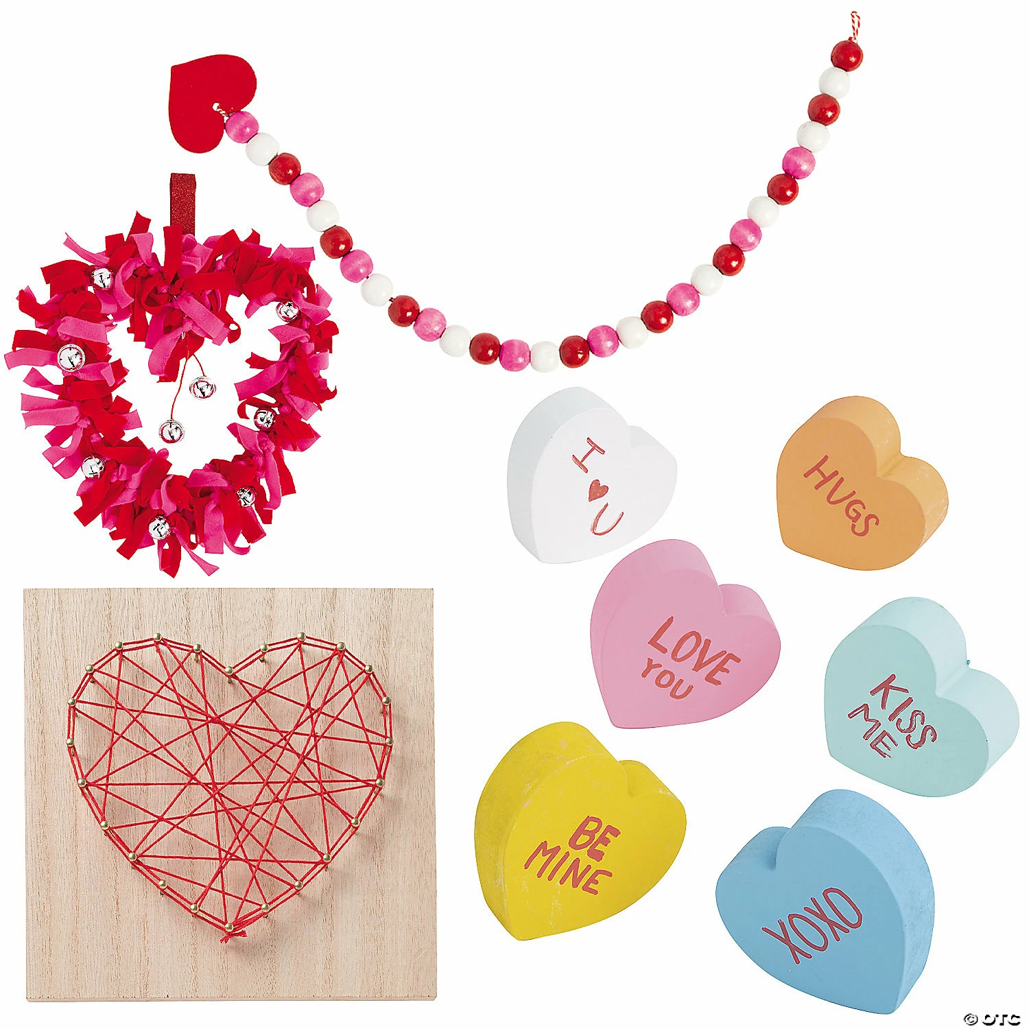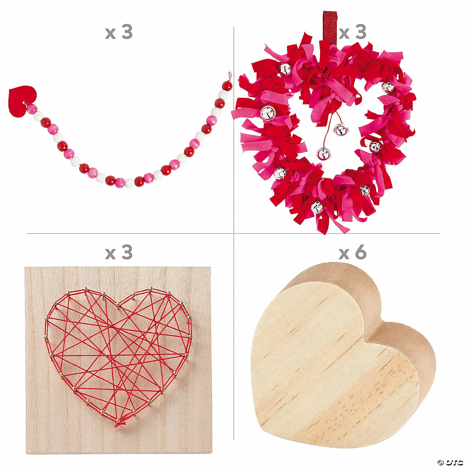 Love is in the air this Valentine’s Day and a great way to celebrate is to invite some friends over to work on these fun crafts with you! This kit comes loaded with a variety of festive and engaging projects all themed around hearts and love. Great for church small groups or holiday party activities, these crafts become wonderful gifts to give loved ones once they’re finished. (15 pcs. per unit) © OTCIncludes:• 6 Wood DIY Heart Shapes (3″ x 3″)• 3 Fleece Tied Valentine Heart Wreath Craft Kits (Includes metal wreath hoops, metal jingle bells and hangers. 15 1/2″ x 15 1/2″ All craft kit pieces are pre-packaged for individual use. Kits include instructions.)• 3 Wood Heart String Art Crafts (Includes string and hardware for hanging. 6″ x 6″)• 3 Valentine Bead Garland Craft Kits (Includes wooden beads and cotton thread. 24″ Kits include instructions.)• Assortments are subject to change at any time and may vary from picture shown. Substituted items will be similar in nature.