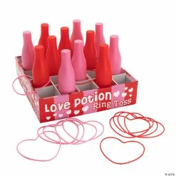 Try your luck at love with this fun game! Players try to toss the heart-shaped rings onto the pink and red bottles to earn points. A fun and easy Valentine’s Day party activity, this is a game most kids already know how to play. This carnival-type game has plenty of pink, red and hearts, making it a great choice for Valentine’s Day or any event with love as the theme. Includes 12 plastic bottles and 12 rings. Cardboard. (25 pcs. per unit) Box, 32″ x 32″ x 4″; bottles, 2 1/2″ x 9 3/4″; rings, 6″ x 5 1/4″. Simple assembly required. © OTC