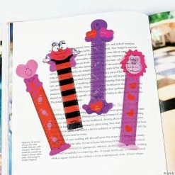 Valentine Character Ruler Bookmarks. Put these fun vinyl bookmarks in all your books! Keep them handy for when you need a bookmark to mark your favorite book passage or a ruler to measure something! With heart, lion, octopus and honeybee shapes, these bookmarks make cute favors for a kid’s Valentine’s Day party or other February 14th event. (4 dozen per unit) 5 1/4″