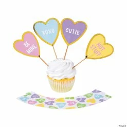 Valentine Conversation Heart Cupcake Wrappers with Picks – 24 Pc.