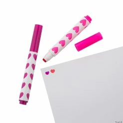 Put your stamp on valentine cards and Valentine’s Day crafts with these fun markers! Each marker stamps either a pink or purple heart to help you show your affection to friends, classmates and family members. These markers also make great Valentine’s Day party favors and classroom rewards! Safe and non-toxic. Conforms to ASTM D-4236. Plastic. 5 1/4″