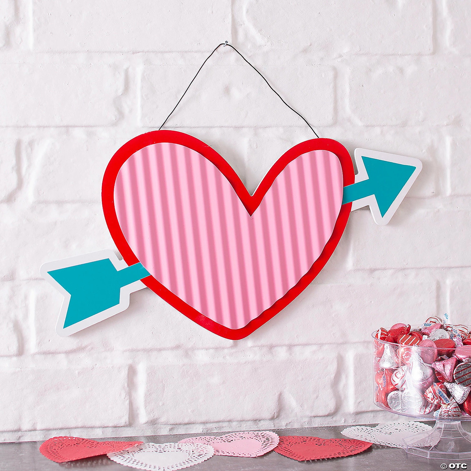 Welcome your guests and neighbors with this cute Valentine’s Day sign! This colorful heart features a layered corrugated metal design and would look great hanging on your front door, wall or anywhere throughout your home. It’s a cute decoration for a Valentine’s Day party or give it as a gift to someone special this year. Wood with metal. 16″ x 9″ Includes hardware for hanging. © OTC