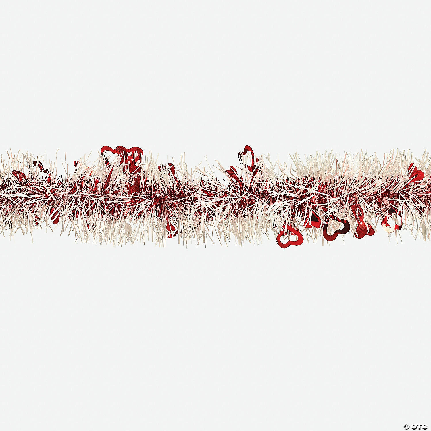Valentine Garland With Hearts. Red foil hearts make this tinsel garland a lovely choice! Perfect for walls, tables or railings, this sparkly decoration will add some shimmer and shine to a classroom or Valentine’s Day party room. Foil. 24 ft.