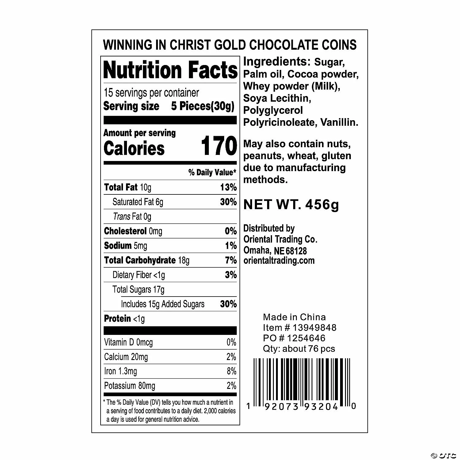There is no prize better to win than to be with Christ! These gold chocolate coins are perfect to hand out to Sunday School students or to have in a large bowl for parishioners to grab as they leave services. These coins are also a great choice for VBS giveaways or to include in welcome gift bags for church visitors. Individually foil-wrapped. (76 pcs. per unit) 1 1/2″ Total wt., 1 lb. © OTC• Candy is non-returnable. For more information, visit our “Return Policy” page located on our website.• Ingredient, nutrition, allergen and other product information are provided on our Web and Mobile sites for reference purpose only, without warranty or representation as to accuracy. Manufacturers adjust their labeling regularly and are solely responsible for the accuracy of the information. For general questions concerning these items, please contact our customer service at 800-228-0475.
